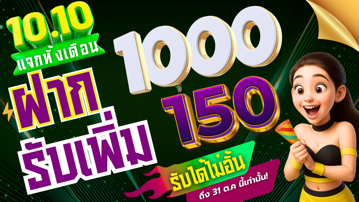 - กำหนดฝาก 1000 ขึ้นไป รับโบนัสทันที 150